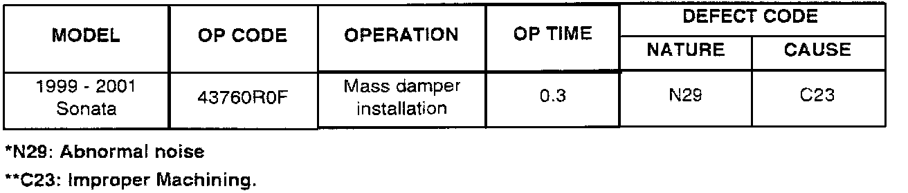 12. Test drive the vehicle and check for a whining noise from the transaxle. If the noise level is similar to other 1999 - 2001 Sonata vehicles, return the vehicle to the customer.