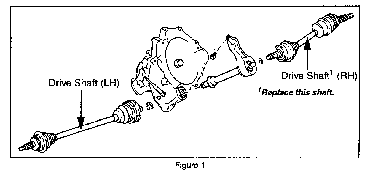 To correct this condition, replace the right side (passenger side) CV shaft. (see figure 1)