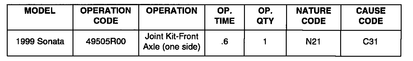 Some 1999 Sonata vehicles may shudder or vibrate during hard, full throttle acceleration due to a sticking inboard CV - Tripod joint assembly.