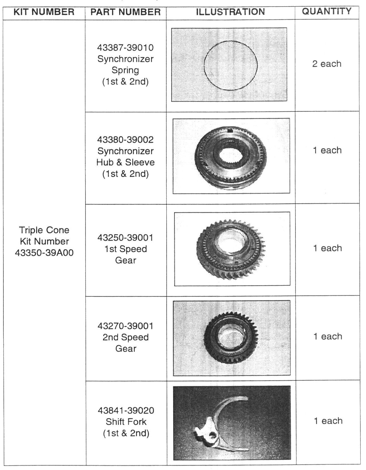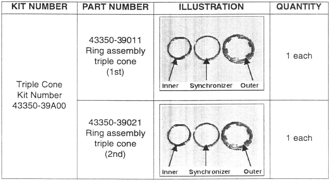 This bulletin provides the service kit parts and assembly procedure for the triple cone synchronizer assembly.