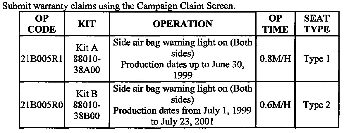 CAMPAIGN 051: 1999-2002 SONATA SIDE IMPACT AIR BAG WIRE HARNESS ROUTING