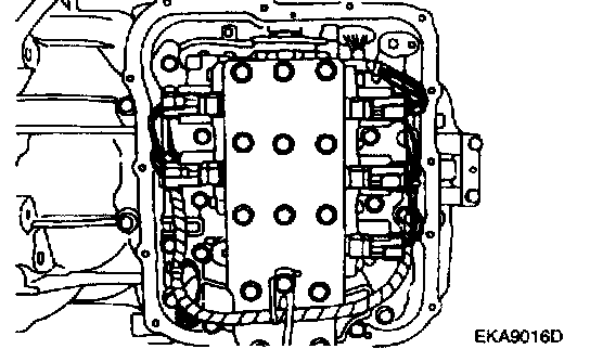 NOTE: The valve body mounting bolts have different lengths. Note the locations of the each bolt to aid in assembly.