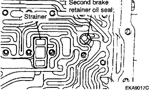 CAUTION: The second brake retainer oil seal must be removed before removing the transaxle powertrain components from the case or damage to the seal will occur.