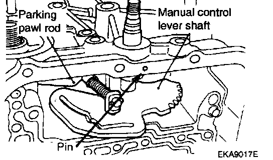 24. Remove the manual control lever shaft and the parking pawl rod.