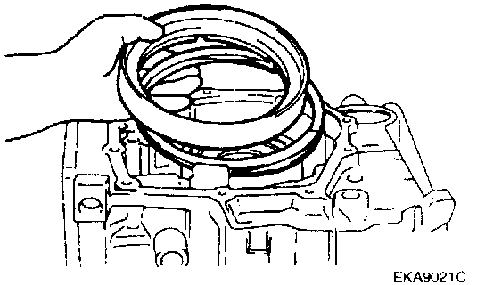 67. Remove the low/reverse brake snap ring.