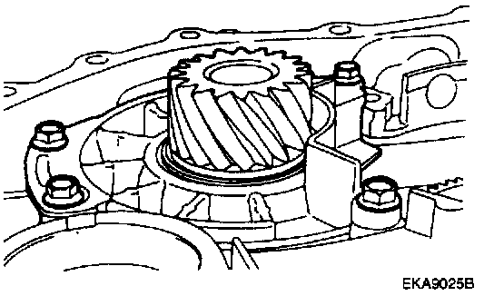 85. Remove the output shaft bearing retainer mounting bolts.