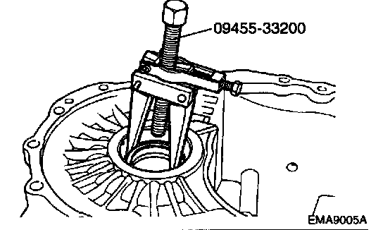 22. Remove the differential bearing outer spacer using special tool (09455-33200) and the drive shaft oil seal.