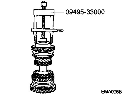 2. Remove the ball bearing and the reverse gear using the special tool.