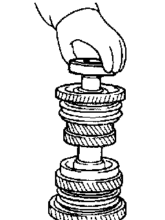 10. Install the 4th speed gear, the 5th speed gear sleeve, the needle roller bearing, the 5th speed gear, the synchronizer ring (5th), the synchronizer hub and the sleeve (5 & R).