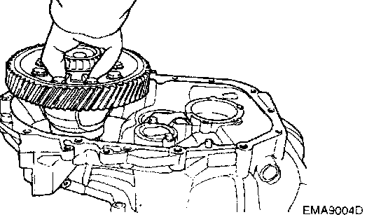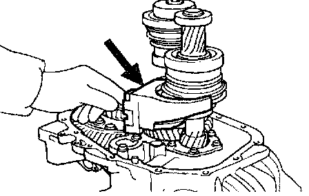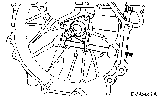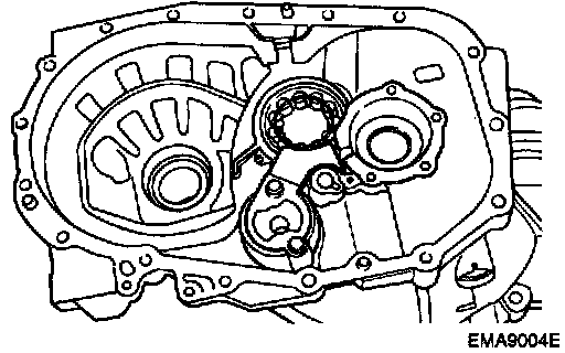 13. Install the clutch housing on the transmission case with the snap ring extended.
