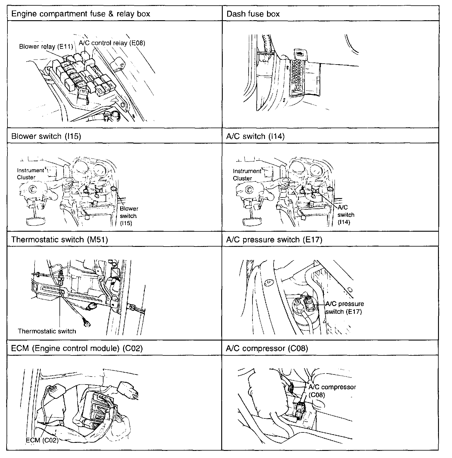 I14 (A/C Switch), I15 (Blower Switch):