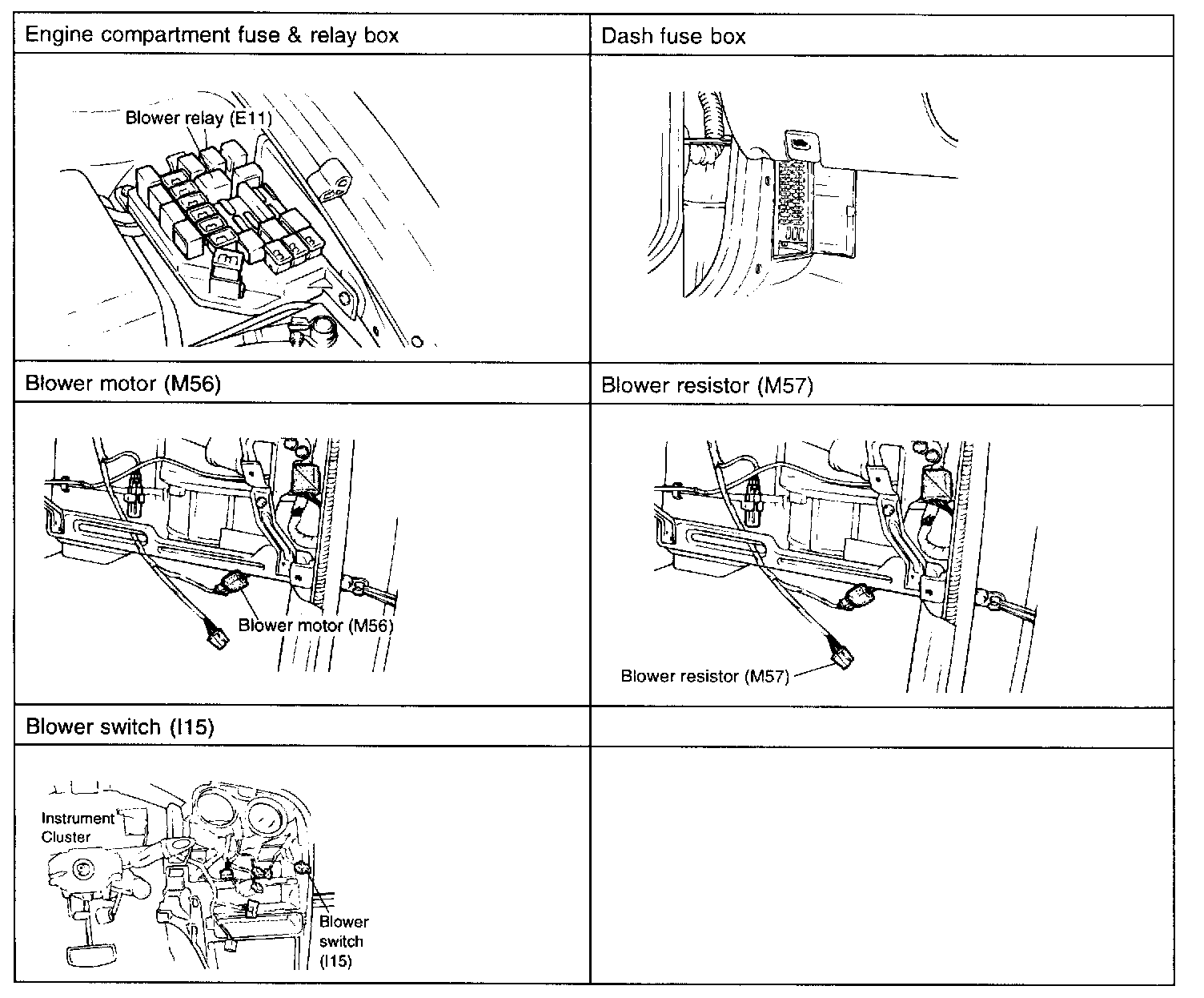 M56 Blower Motor, M57 Blower Resistor: