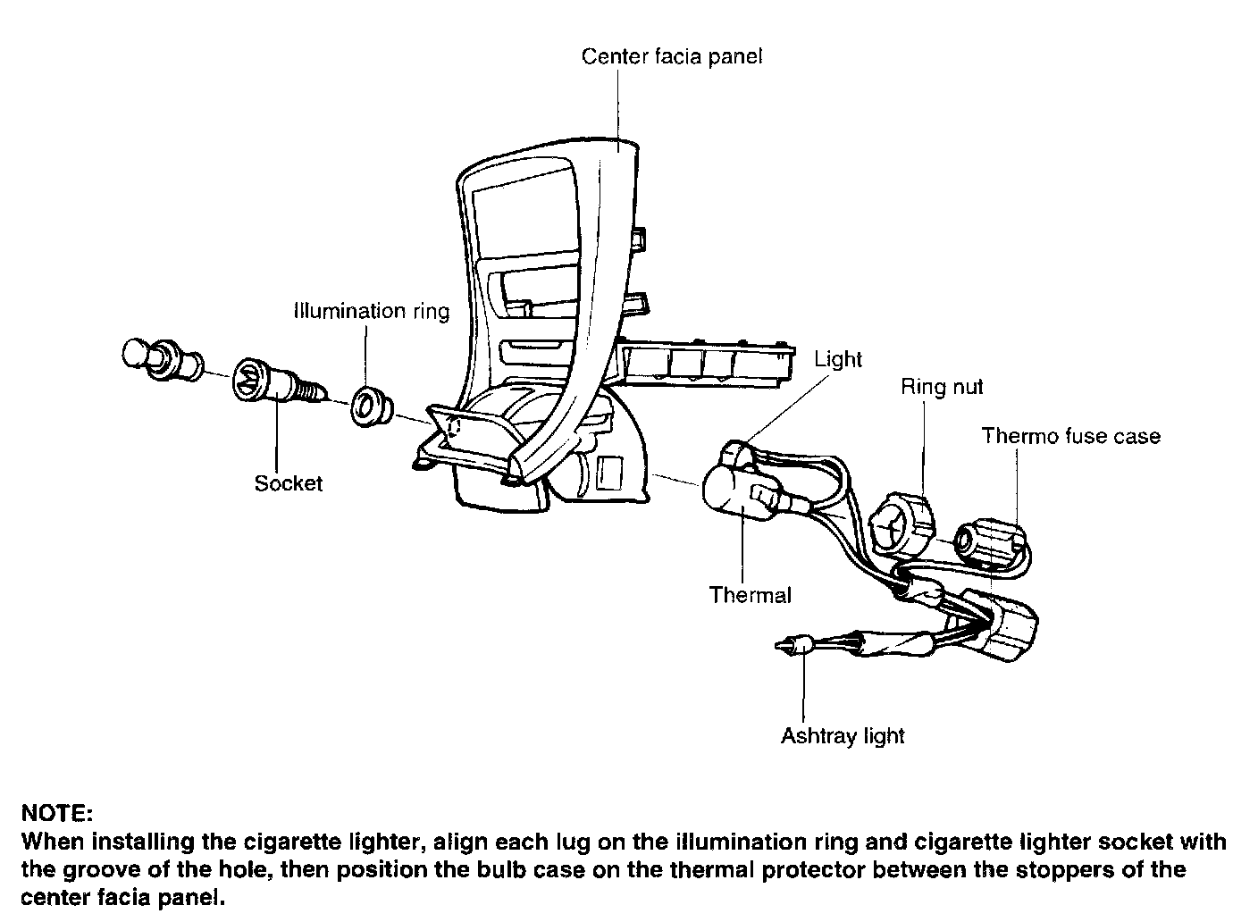 4. Remove the ring nut and separate the cigarette lighter socket from the thermal protector.
