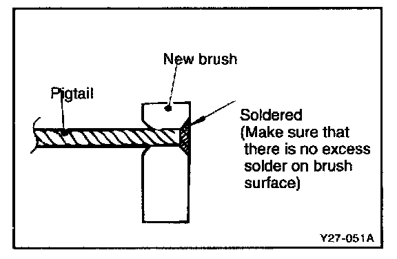 4. Insert pigtail into hole provided in new brush and solder it. Make sure that pigtail and excess solder do not come out onto brush surface.