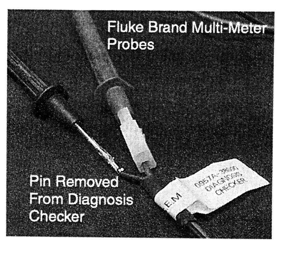 The checker is designed to work with the sharp probes found on most common multimeters. Just push the probe into the female pins in the white plastic connector on the SST. Some multimeters have large handles on the probes, like the Fluke brand. In this case, use a pin removal tool to pop the black wire terminal from the white connector, leaving lust the red wire in place. This will allow the multimeter to connect to the SST.