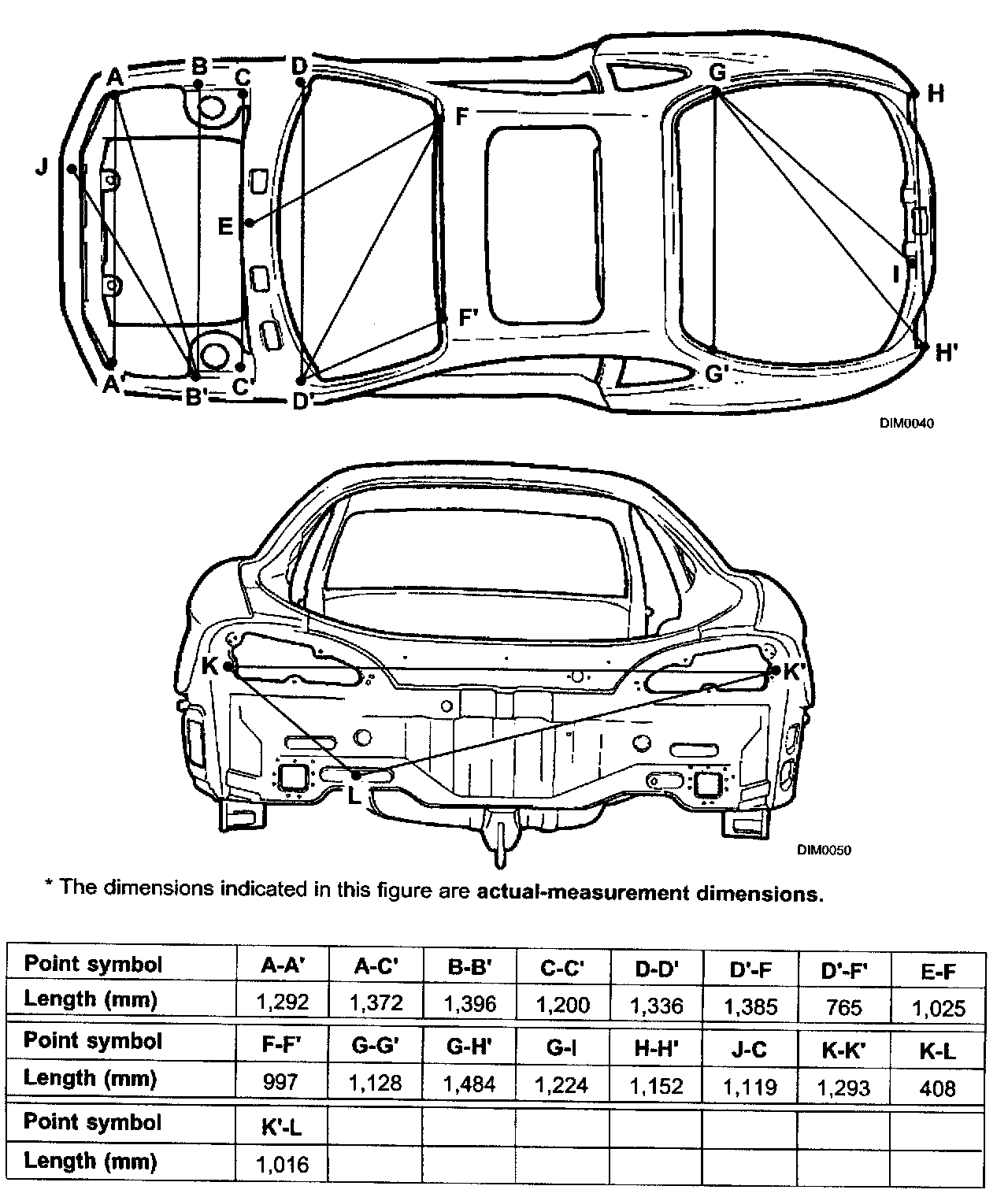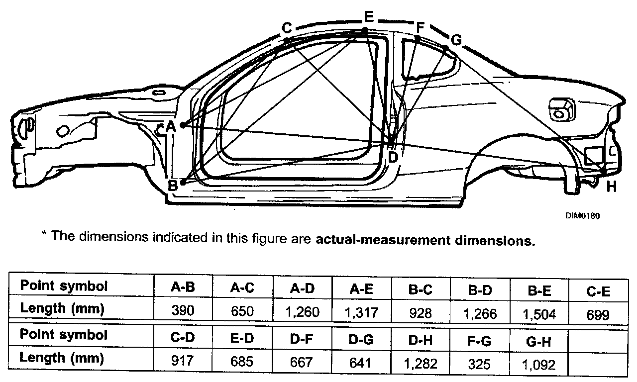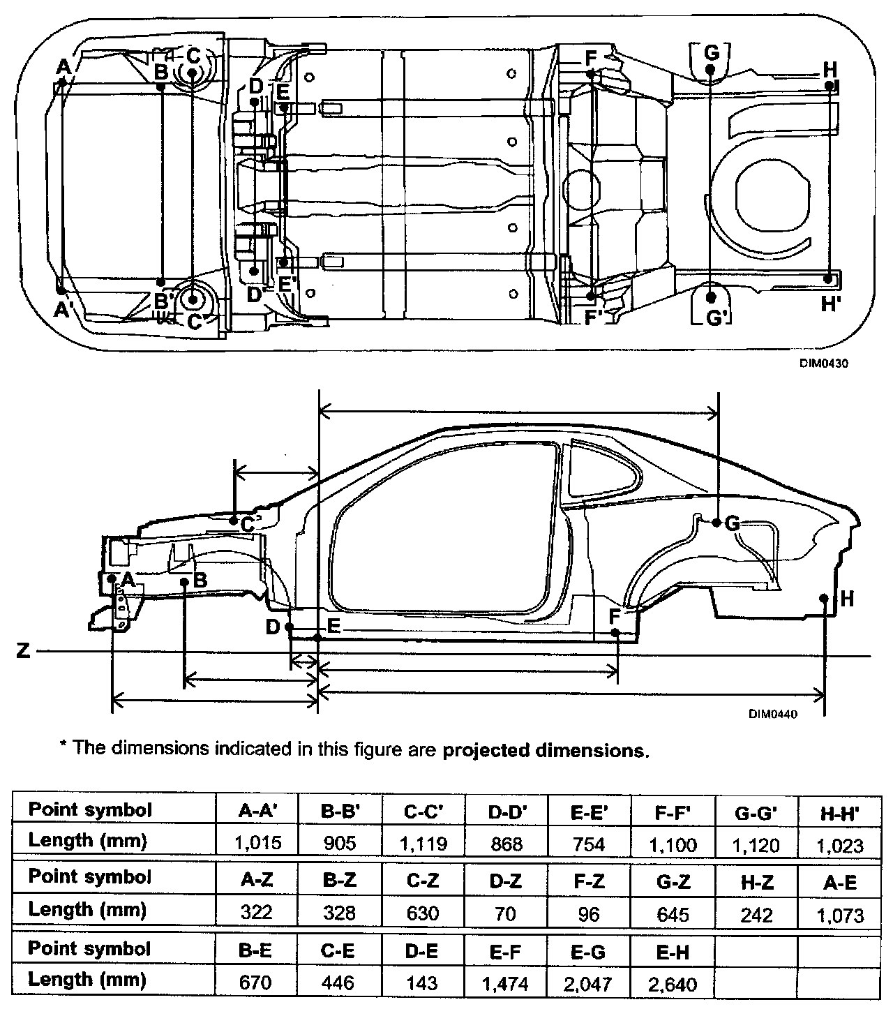 1. These are the dimensions measured when the measurement points are projected into the reference plane, and are the reference dimensions used for body alterations.
