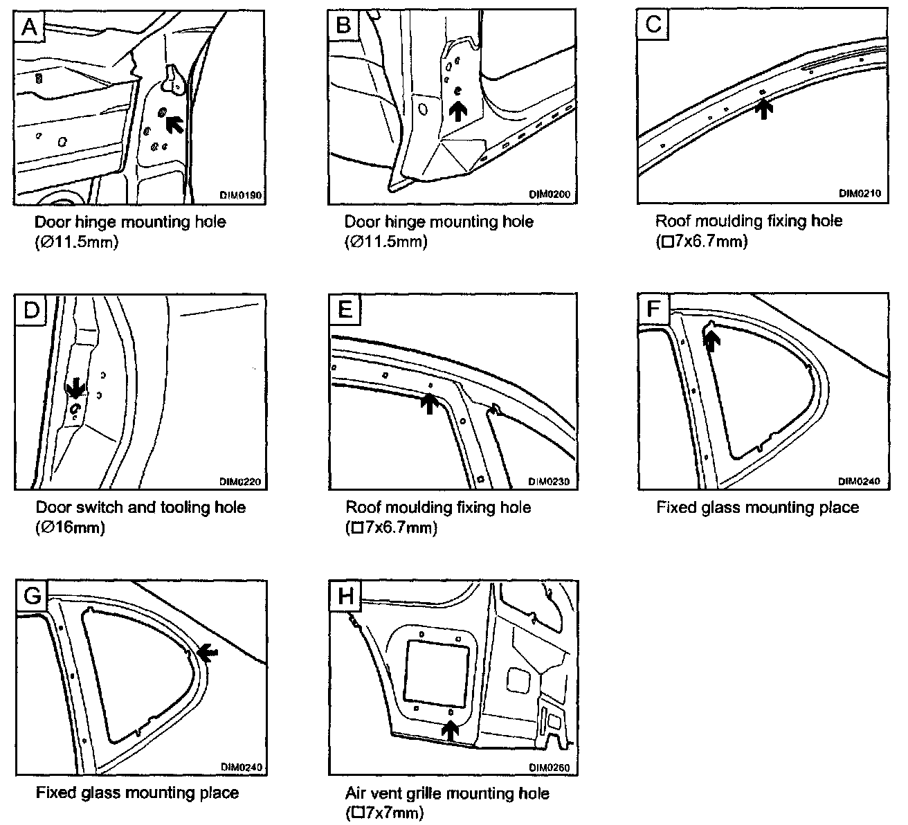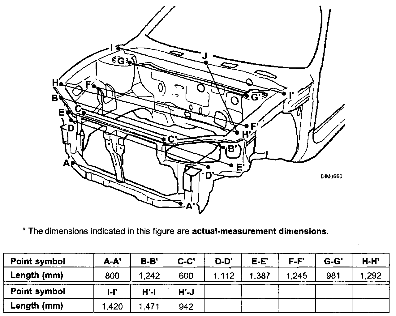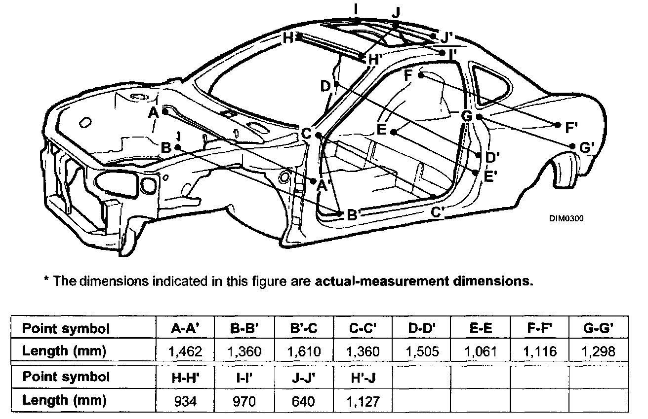 1. These are the dimensions measured when the measurement points are projected into the reference plane, and are the reference dimensions used for body alterations.