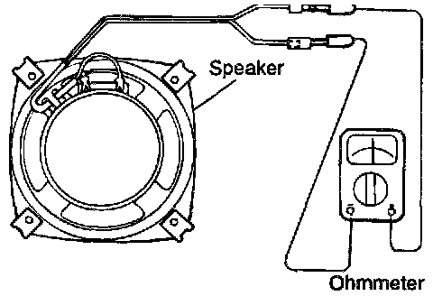 2. If clicking sound is emitted from the speaker when the ohmmeter plugs touch the speaker terminals, the speaker is normal.