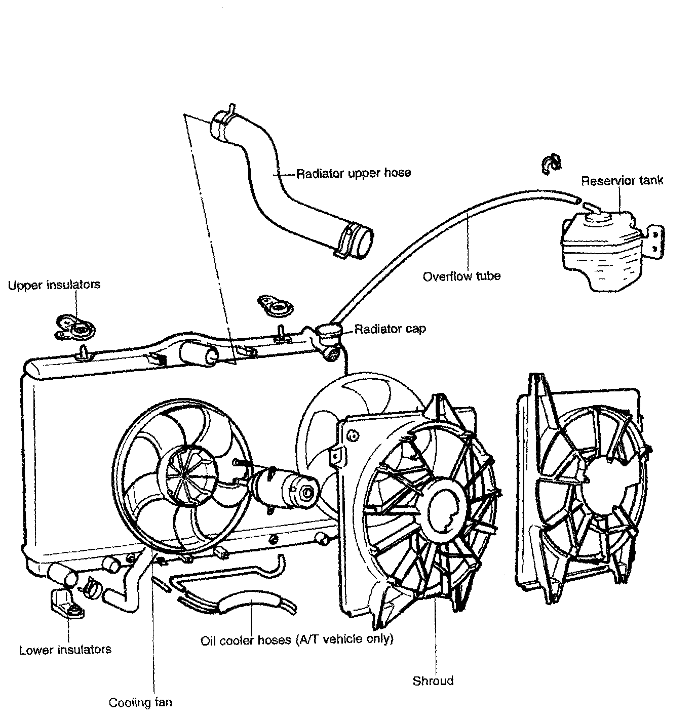 4. Disconnect the upper and lower hose and overflow tube.