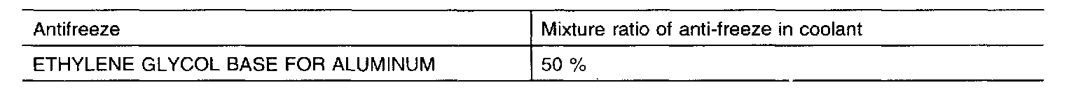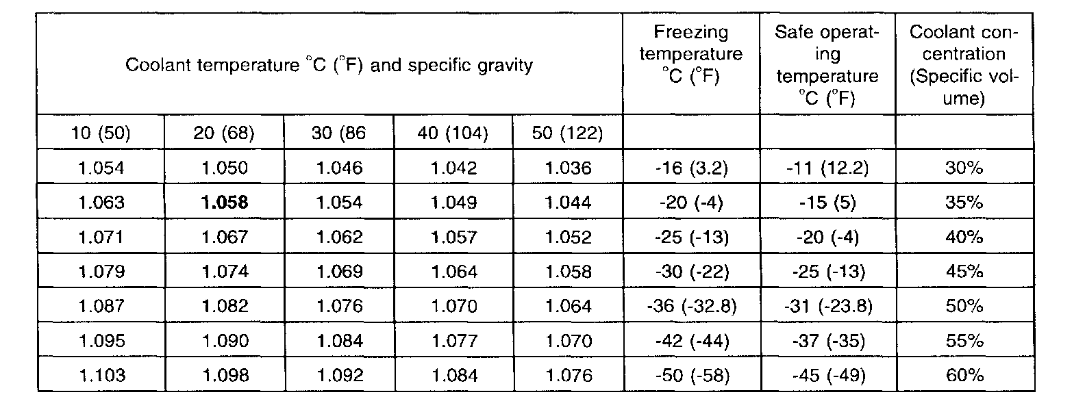THE TABLE IS APPLICABLE ONLY TO THE SPECIFIED HIGH QUALITY ETHYLENE GLYCOL (ANTIFREEZE) COOLANT
