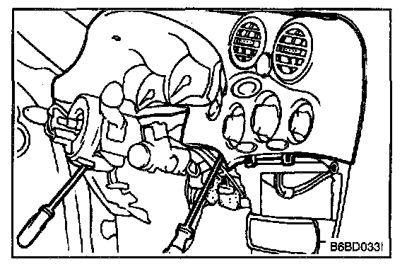9. Remove the heater control panel assembly from the cluster facia panel.