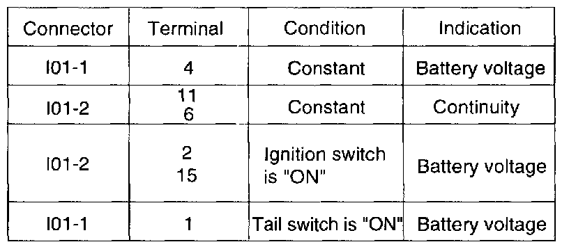 Remove the instrument cluster, check for the indication between each terminals (harness side) and ground.