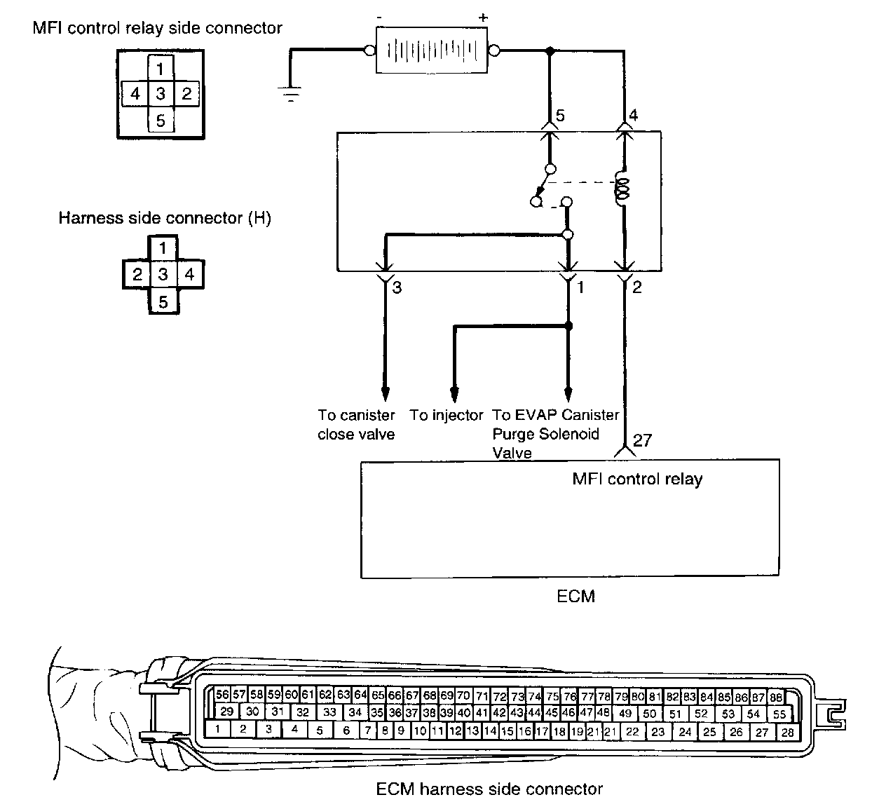 Main Relay (Computer/Fuel System): Testing and Inspection