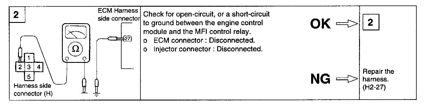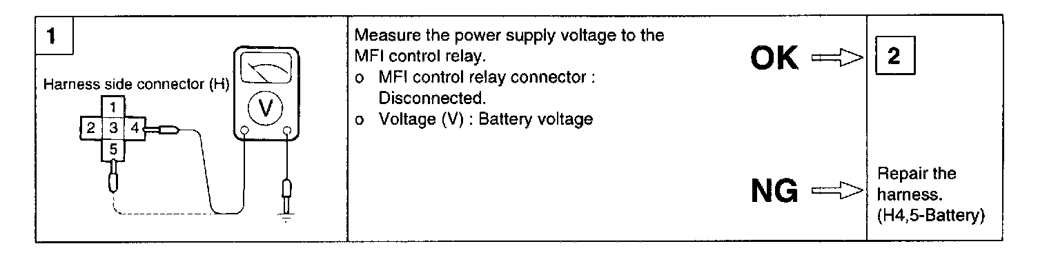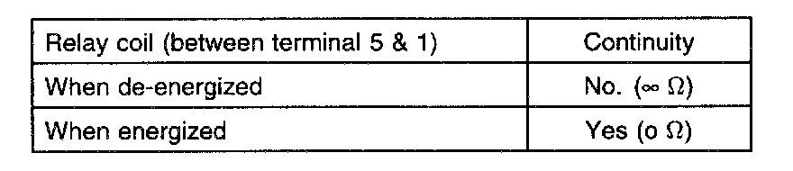 1. Check continuity of relay contacts between terminal 4 (+) and 2 (-).