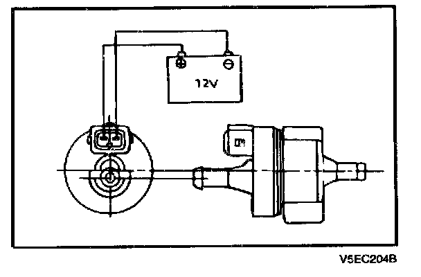 4. Apply vacuum and check when voltage is applied to the evaporative emission canister purge solenoid valve and when the voltage is discontinued.