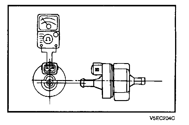 6. Measure the resistance between the terminals of the solenoid valve.