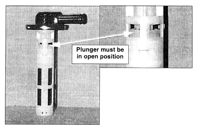 Verify that the Fill Vent Valve is open by carefully removing the valve and confirming that the white plastic shut-off plunger moves freely inside its cage.