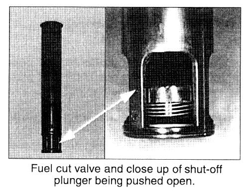If the fuel cut valve plunger is stuck closed, a hard-to-fill condition may result. Verify that the plunger moves up and down freely allowing fuel to enter the tank, but does not allow fuel to travel up the neck (under pressure). The plunger should be "up" (closed) in its free state.