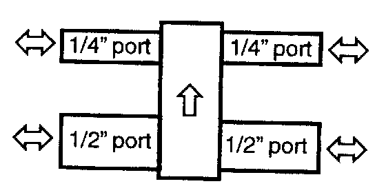 3. Air flows from 1/2" port to the 1/4" port when blowing into one of the 1/2" ports while plugging the other 1/2" port.