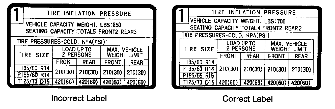 Some Tiburon vehicles produced between 12/8/98 and 3/8/99 contain misprinted tire inflation pressure labels. This TSB provides a procedure for label replacement.