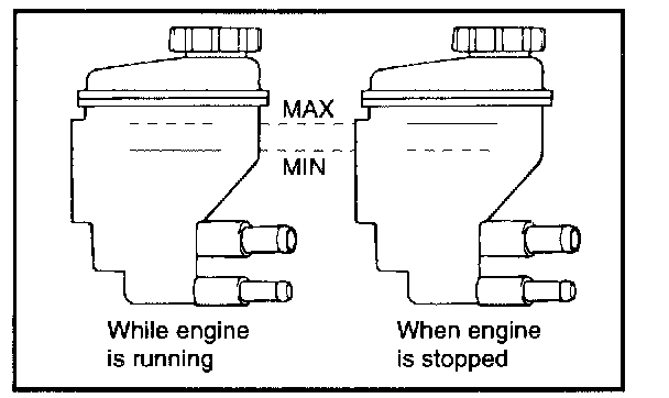 - If fluid level changes up and down considerably when the steering wheel is turned or fluid overflows from the reservoir and the engine is stopped, air bleeding is not enough. Air bleeding should be done again.