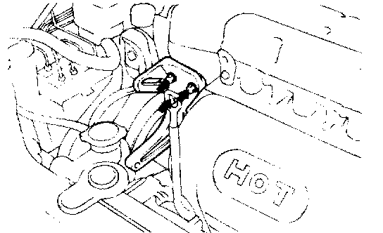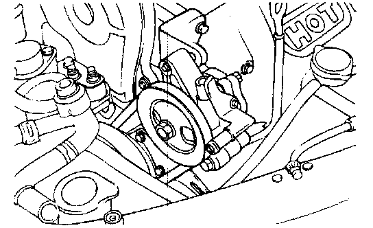 6. Remove the power steering oil pump mounting bolts and the tension adjusting bolt.