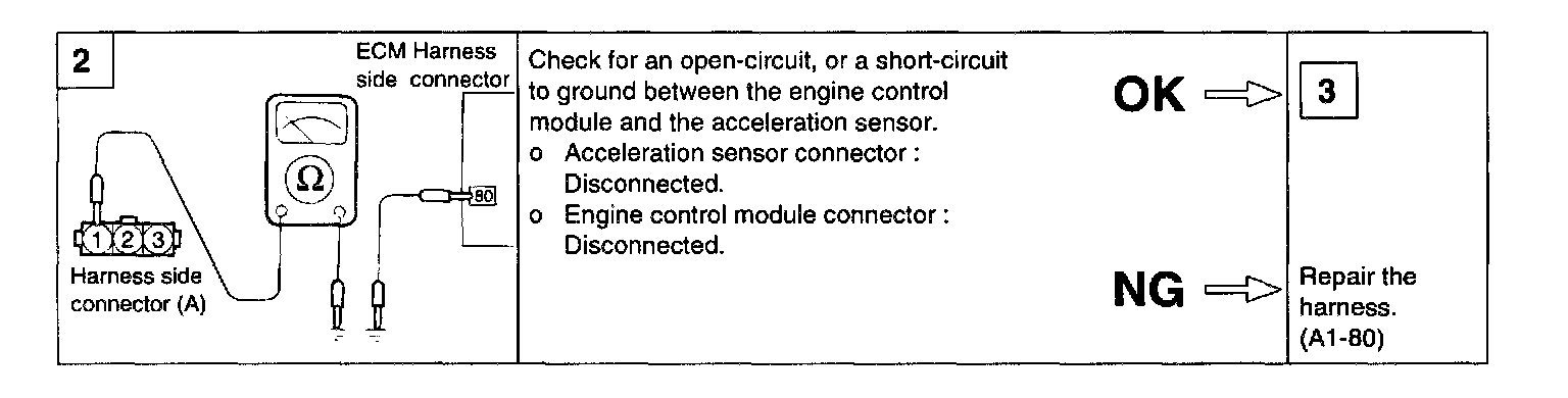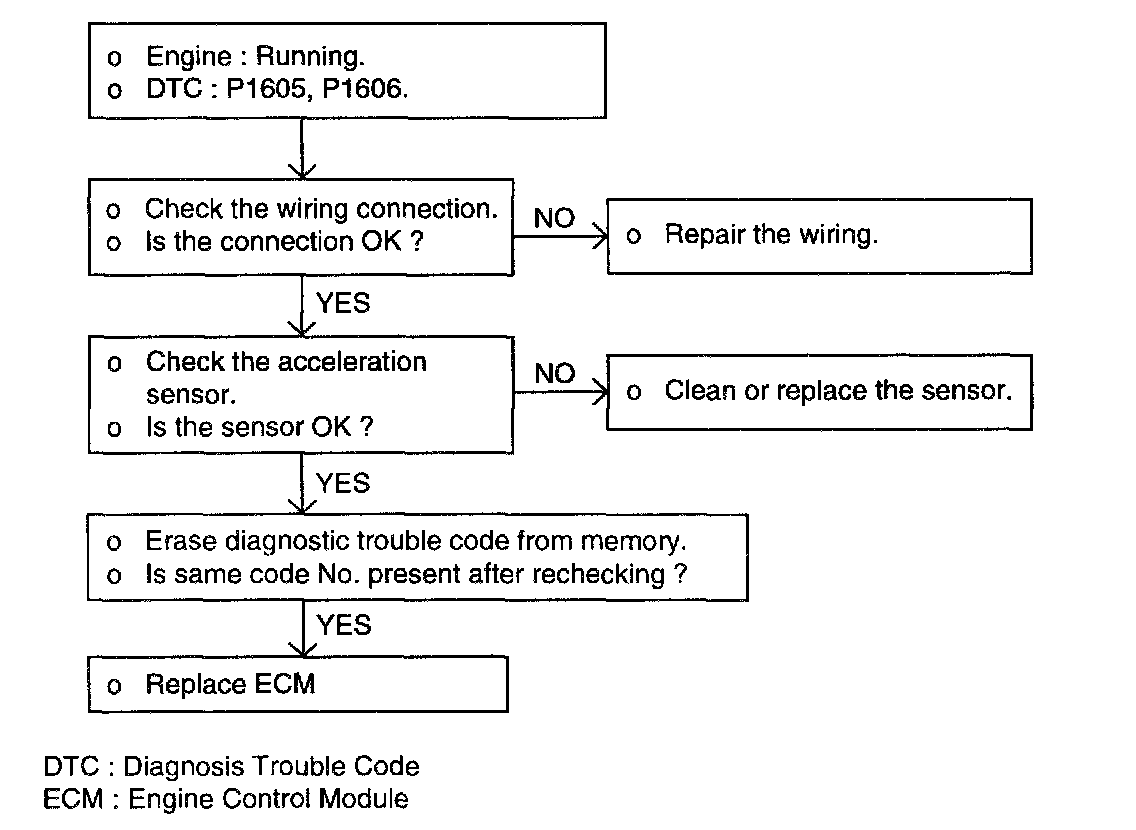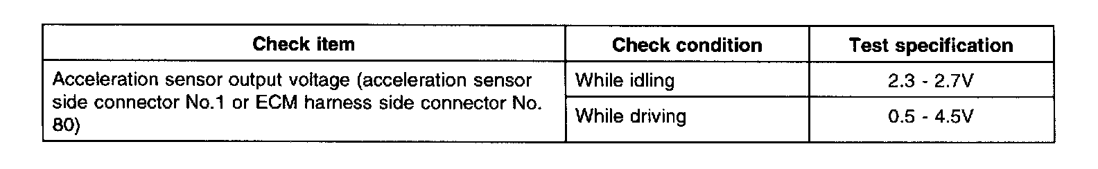 When abnormal output voltage occurs at stop position of vehicle or acceleration sensor is operated beyond normal operating zone.