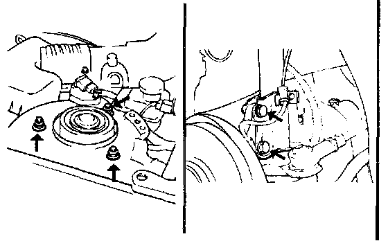 2. Detach the brake hose and front speed sensor wiring from the strut assembly.