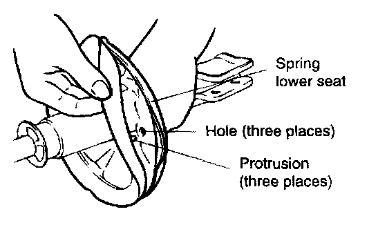 1. Install the lower spring pad so that the protrusions fit to the holes in the spring lower seat.