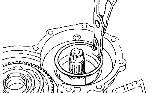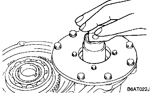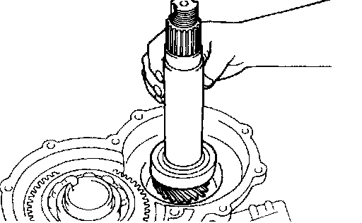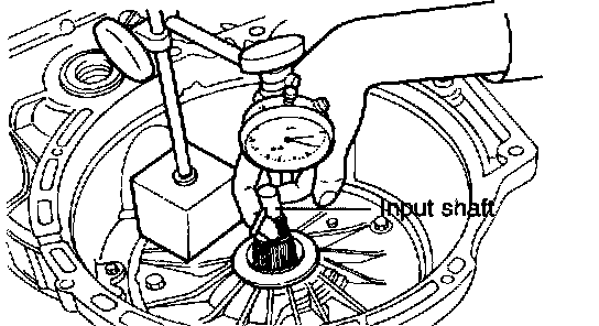 When checking end play, pull out or push in the input shaft with pliers. Be careful not to scratch the input shaft. Record indicator reading for reference when reassembling the transaxle.