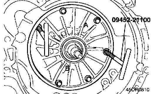 1 Turn the knob of both special service tools simultaneously and uniformly not to be inclined to "B" side.