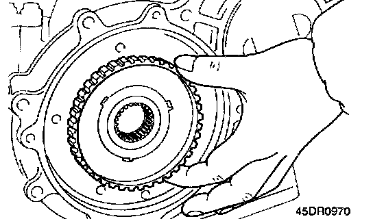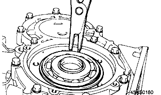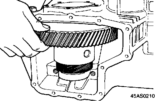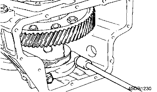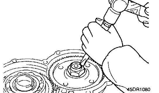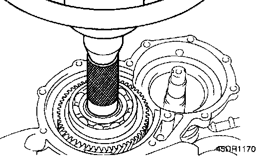 45. Using the special tool or presser, remove the output flange and drive gear.