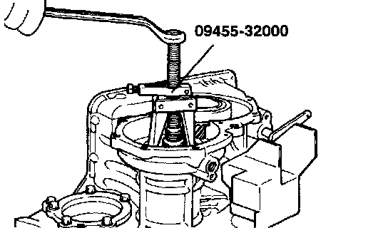 17. Attach the special tool (09453-21310) on the center support. Holding the handle of the tool, pull the center support straight upward.