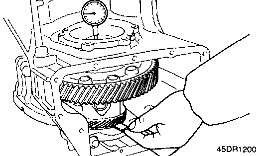 48. Before removal of the differential gear, measure the end play of the differential gear with a dial gauge.