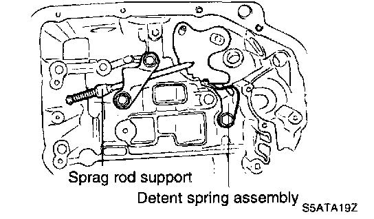 53. Remove two bolts of the sprag rod support and the bolt of the detent spring assembly.