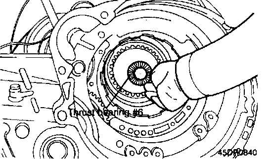 When the thrust race is replaced with that of a different thickness, also replace thrust washer #1 located between the oil pump and front clutch. Use a washer of proper corresponding thickness corresponding to thrust race. Find correct pair of thrust races (metal) and thrust washers (fiber) from following table.
