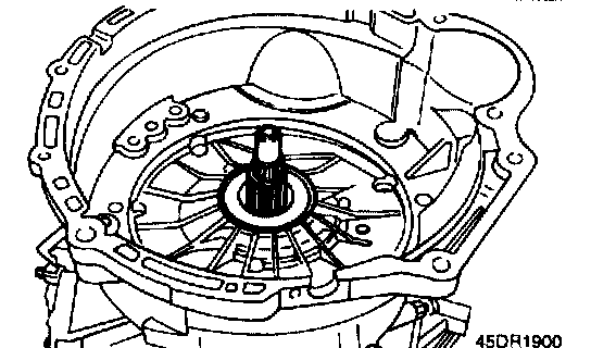 76. After applying automatic transaxle fluid to the outside surface of the oil pump-side cylindrical portion of the torque converter, install the torque converter carefully so as not to damage the seal lip. Make certain that the torque converter is in mesh with oil pump drive gear.