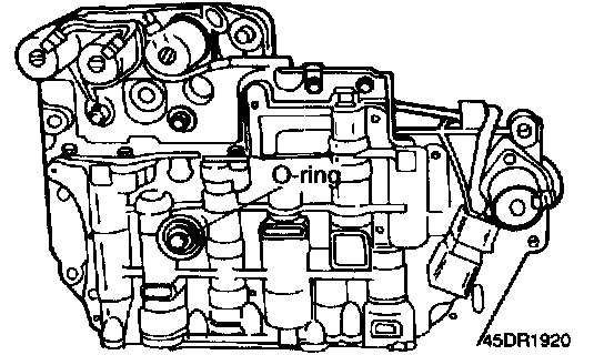57. Install the O-ring at the center of the top of the valve body assembly (brake oil pressure passage).