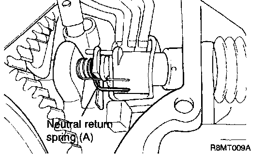 NOTE: Larger diameter of the neutral return spring (B) should be toward the side wall of the clutch housing as shown above.