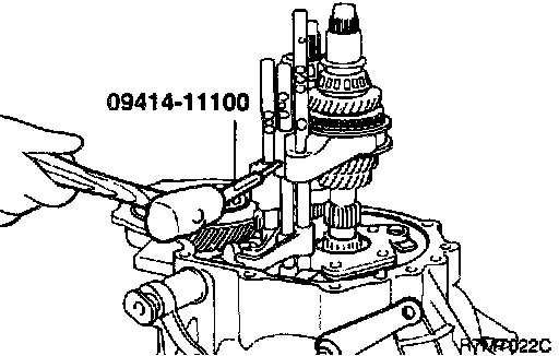 14. Install the input shaft bearing outer race and spacer using the special tools.